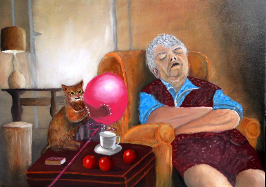Naslov: "Iznenadno buđenje". Originalna vlastita umjetnička slika u tehnici ulje na platnu. Dimenzije: 70x50 cm. Informacije preko e-maila: ivan.varga333@gmail.com ili na mobitel: 091 916 1725. Poštarinu plaća kupac.