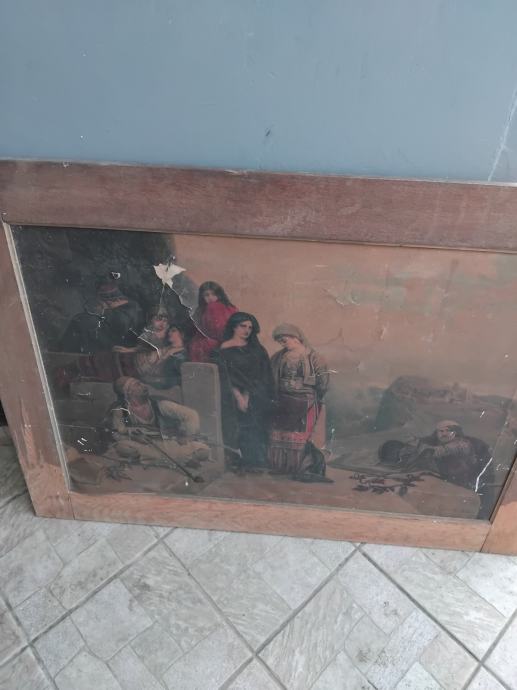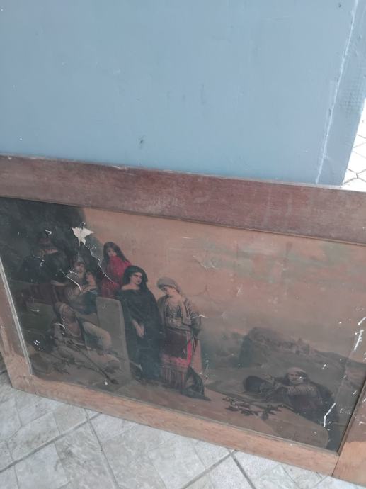 Zbog starosti slika ima vidnih oštećenja kao i okvir.