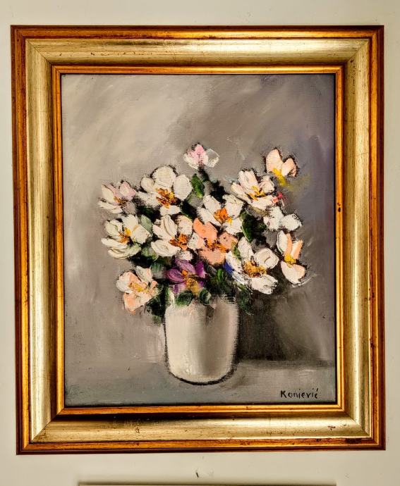 Ulje na platnu, uramljeno, "Cvijeće", dimenzije sa okvirom 52x62 cm, uz sliku dobijete račun.
