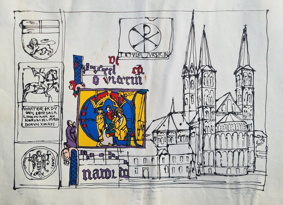 Josip Botteri Dini "Tri Kralja , katedrala Bonn" 50x70cm LOŠIJE STANJE