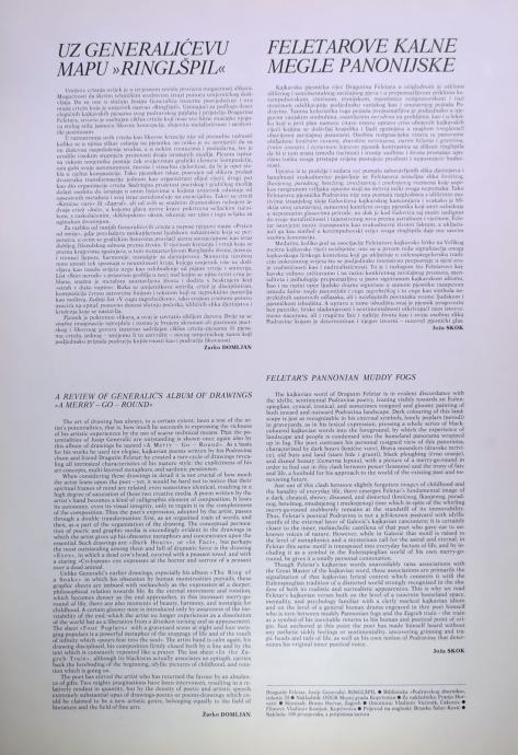 U svakom slučaju mapa Ringlšpil s pjesmama Dragutina Feletara i crtežima Josipa Generalića u sve otežanijim izdavačkim uvjetima mali je pothvat i po svojoj grafičkoj i pjesničkoj čistoći i kao novina u izdavalaštvu.”