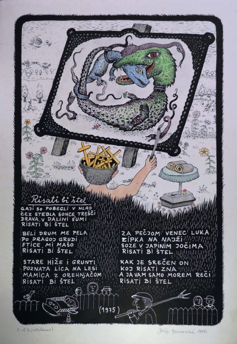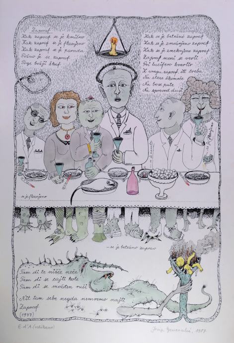 Josip Generalić stvorio je na osnovu pjesama, predložaka, osebujan ciklus crteža koji je potvrdio još jednom njegovo majstorstvo i zadržao sve bitne značajke njegova zrelog stila: jasnoću likovne koncepcije, slojevitu metaforičnost i sardonički pesimizam.