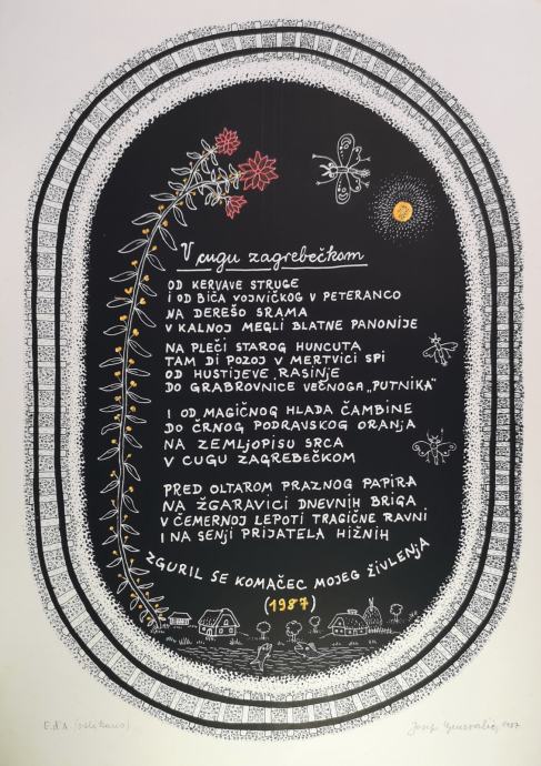 To je dobro primijetio i Žarko Domjan kad je u predgovoru zapisao: … U razmatranju ovih crteža kao likovne kreacije nije od presudne važnosti koliko se u njima slikar oslanja na pjesnika, no teško je ne zamijetiti da su im duševna raspoloženja srodna, a u nekim trenucima i podudarna, što je urodilo visokim stupnjem prožetosti dvaju izražajnih medija. Pjesma ispisana rukom umjetnika postaje čak svojevrstan grafički element kompozicije, ona gubi svoju autonomnost, štoviše i vizualnu cjelovitost, da bi je opet stekla u cjelini kompozicije ….