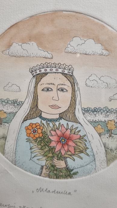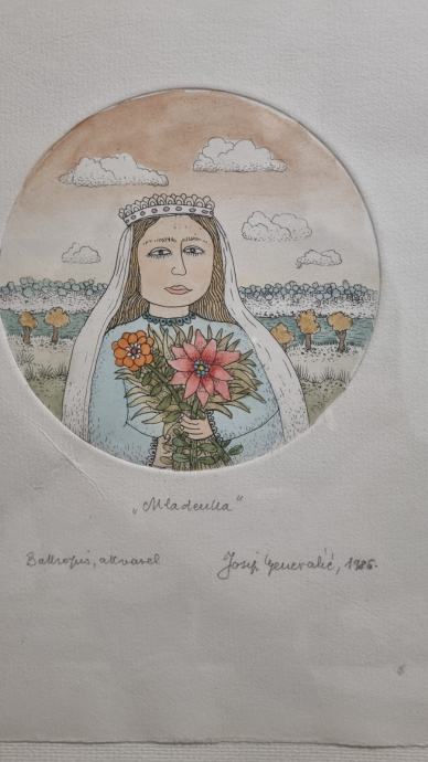 Josip Generalić "Mladenka" akvarel bakropis 30x20cm; iz 1986 godine.