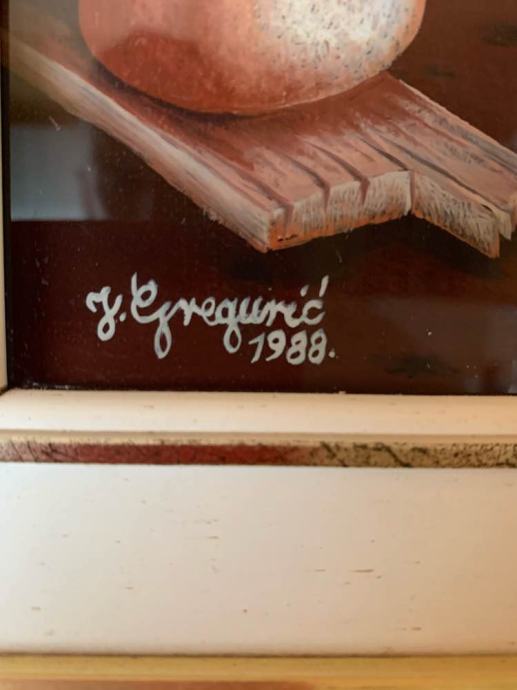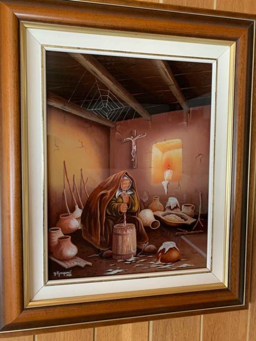Prodajme sliku J. Gregurića - 1988.g. Slika predstavlja stari način pravljenja vrhnja. Slika je iz privatne zbirke. Slikano je tehnikom uljem na staklu. Dimenzije 45x50. Isključivo osobno preuzimanje. Pozvati na broj: 098/496/808.