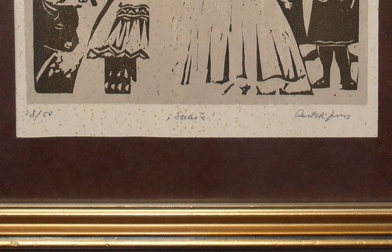 Uramljena grafika iz 50-tih poznatog hrvatskog umjetnika, slikara i grafičara, J. Resteka.... cca 30 x 40 ( sa okvirom )