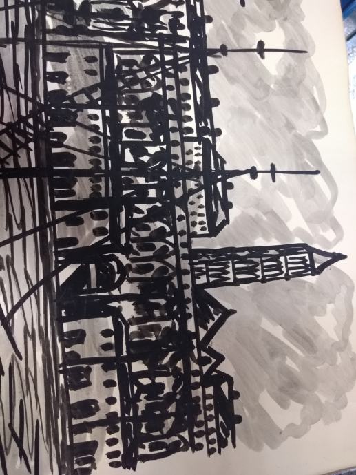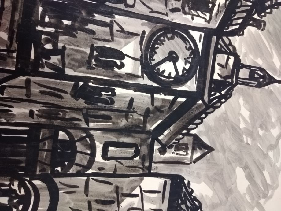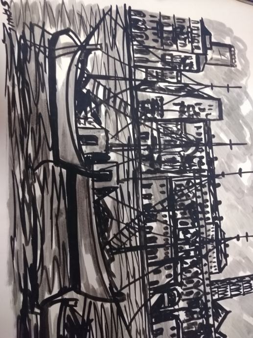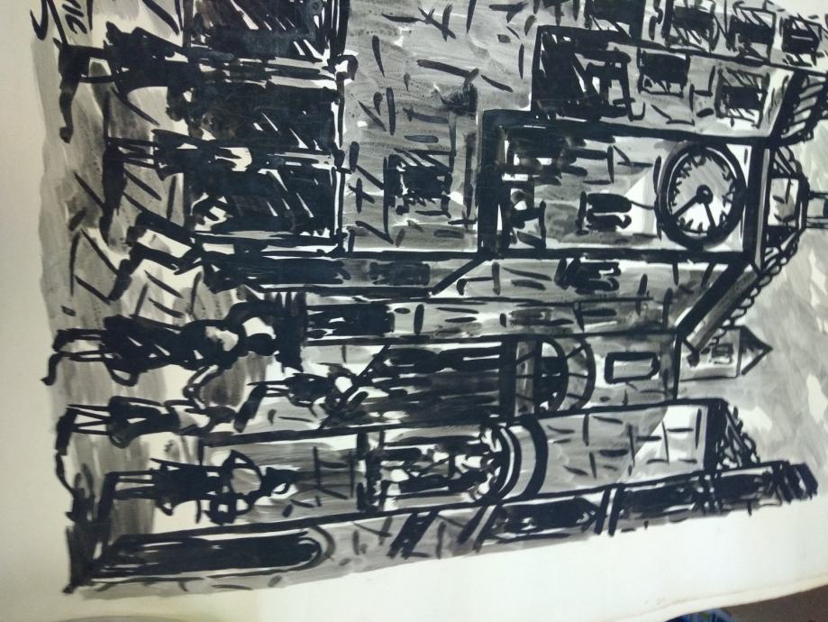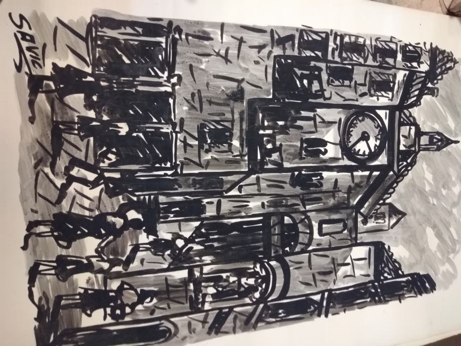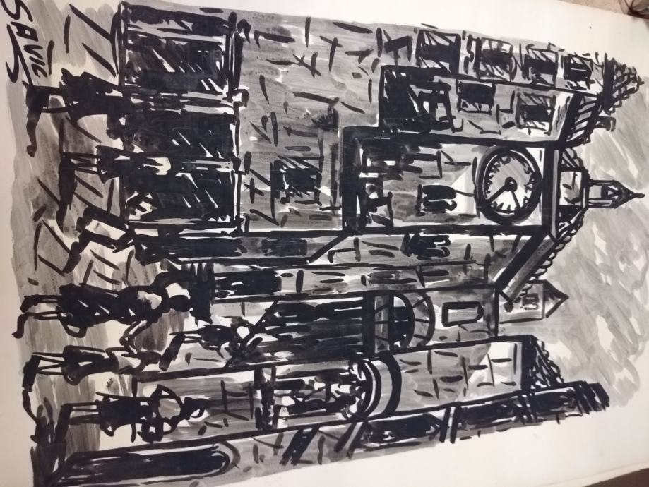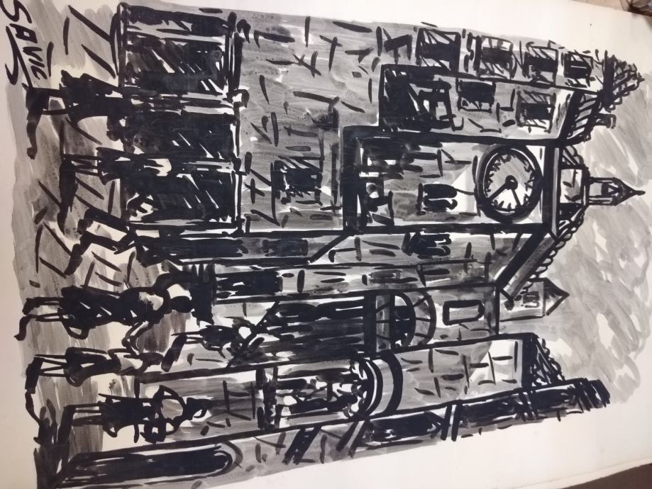 Dvi slike od njegovih prvih deset slika, lavirani tuš, oko 1960 g.