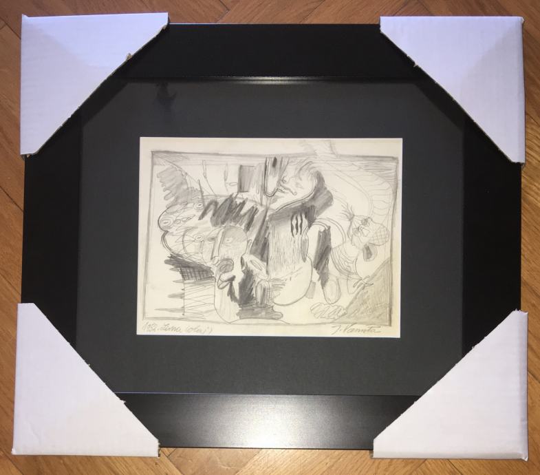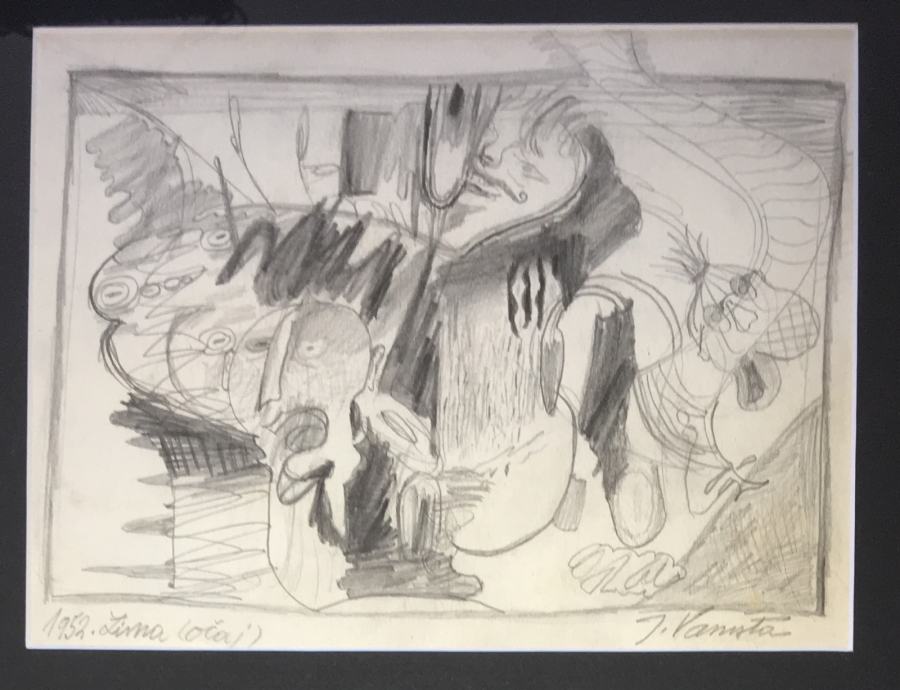 Crtež olovkom čuvenog hrvatskog slikara Josipa Vanište iz 1952.g.naziv slike: Zima (očaj), Novouokvireno i ostakljeno. Dimenzije s okvirom su 45x38cm (dimenzije unutar paspartua su 24x18cm).