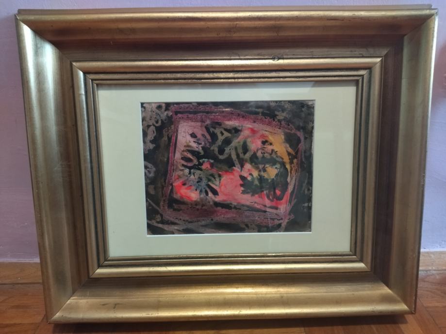 Joško Baica, apstrakcija, akvarel, potpisan, uokvirena slika u dobrom stanju