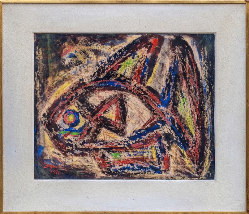 Slika iz 57-e pastel-vosak,motiv RIBA +okvir iz vremena.