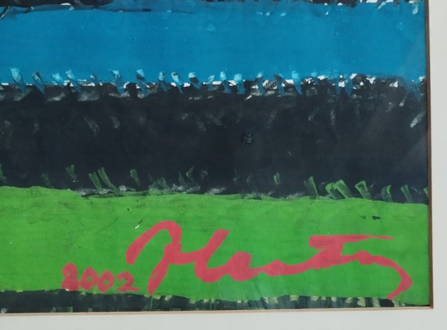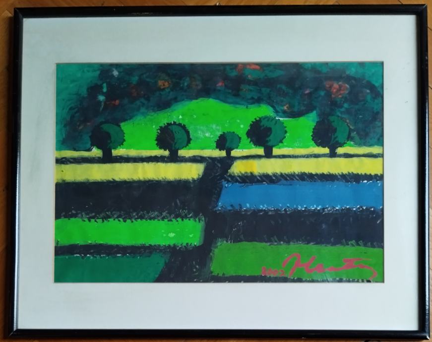 Ulje/tempera na papiru. Slika iz 1969. čuvenog vinkovačkog akademskog slikara Joze Matakovića. Uokvireno i ostakljeno. Dimenzije slike s okvirom su cca 50x40cm. Dimenzije unutar paspartua su cca 40x28cm. Prošlo je jedanaest godina od smrti akademskog slikara i scenografa Joze Matakovića (15. travnja 1922. - 17. siječnja 2008.), autora grba Vinkovačkih jeseni i jednog od osnivača Vinkovačkih jeseni. Bio je čovjek iznimne životne energije, umjetnik čiji će osebujan umjetnički rad zasigurno zlatnim slovima ostati upisan u likovnoj i stvaralačkoj povijesti Vinkovaca, Slavonije i Hrvatske. Joza Mataković dobitnik je nagrade Grada Vinkovaca, 2002. - Zlatne plakete Grb grada Vinkovaca i brojnih drugih priznanja. Nakon Škole primijenjenih umjetnosti, u kojoj je maturirao 1945., diplomirao je scenografiju na Akademiji kazališne umjetnosti, u klasi profesora Kamila Tompe. Učio je slikarstvo kod hrvatskih velikana Ernesta Tomaševića, Ede Kovačevića, Vanje Radauša i Antuna Motike, a scensku umjetnost kod Ranka Marinkovića, Branka Gavelle i Drage Ivaniševića. Prvu izložbu imao je u Vinkovcima 1948. godine i od tada je izlagao širom Hrvatske te u Švedskoj, Njemačkoj, Italiji, Sloveniji i Bosni i Hercegovini.