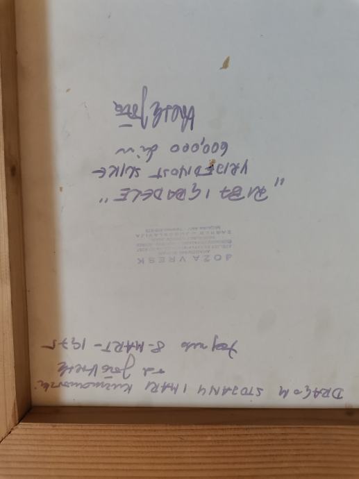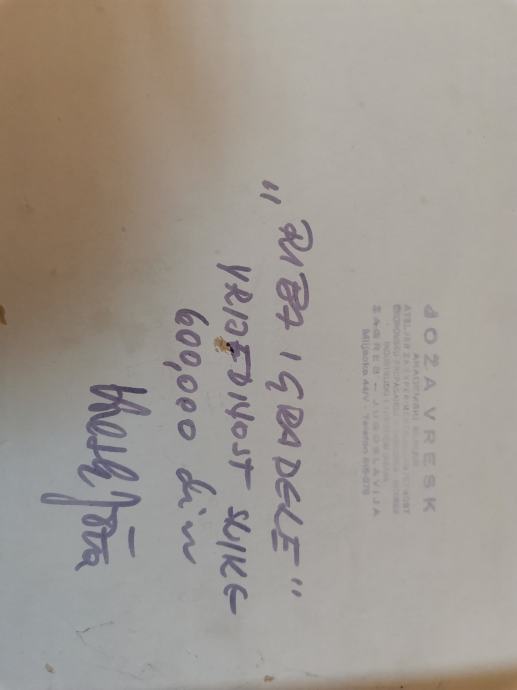 Prodajem navedenu sliku, ulje na platnu, akademskog autora Joža Vresk. Slika dataria iz 1975 god, te ima posvetu sa potpisom. U vrlo dobrom stanju.