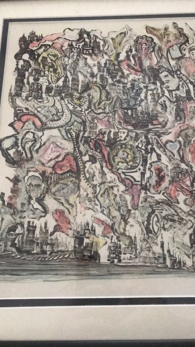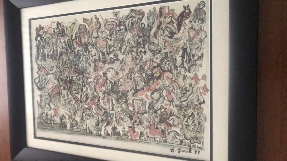 Tus u boji. Fantasticno bogata i kompleksna slika velicine 50-35 cm u novom okviru. Slika je bila u galeriji u Njemackoj