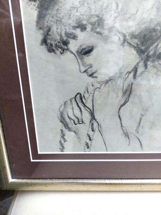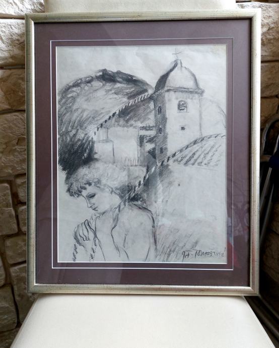 Ovaj prekrasni crtež pokojne splitske slikarice i grafičarke dolazi u novom okviru, pod staklom, spreman za postavljanje na zid.