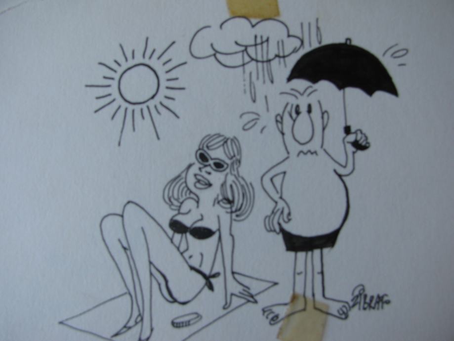 Originalne karikature Dinka Žibrata/tuš/ iz serije "čovjek sa psom"koje su objavljivane kao duhovita najava vremenske prognoze na TV Zagreb,krajem 60-tih,šest komada,po 500 kn kom. ili u kompletu za 2000 kn 0913370441