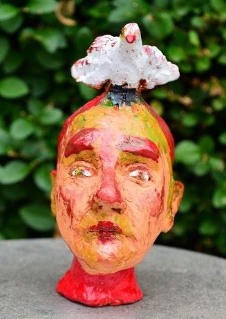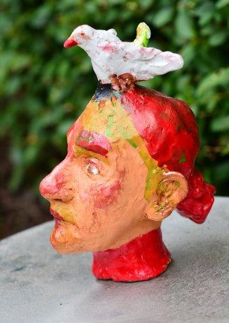 Karina Sladović "Žena s golubicom" skulptura oslikana terakota 25cm