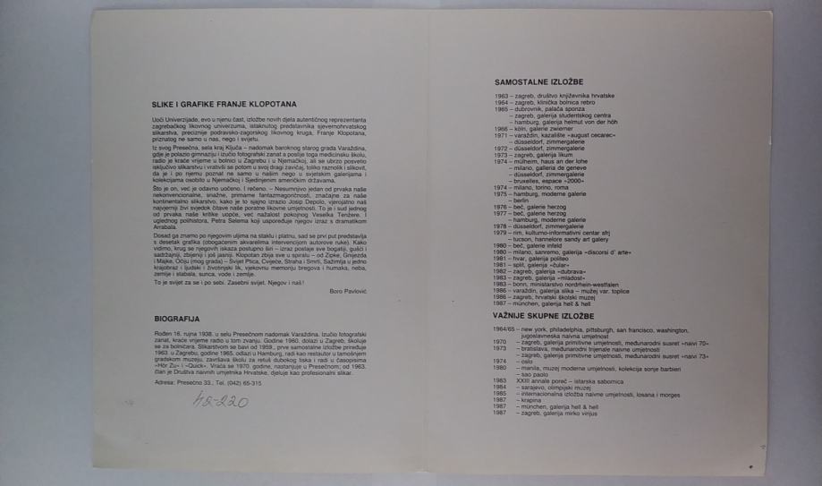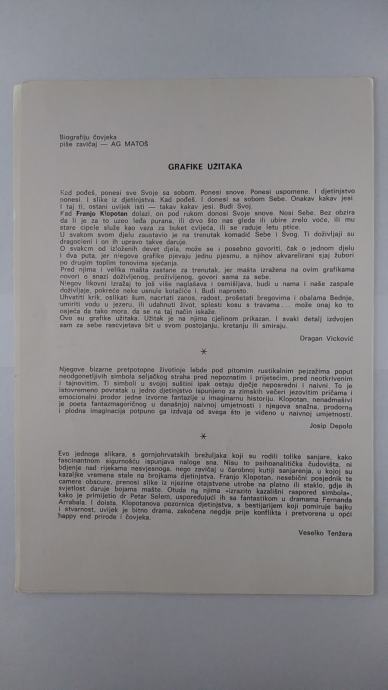 Prodajem program katalog s otvorenja izložbe našeg poznatog majstora naivnog slikarstva Franjo Klopotan.