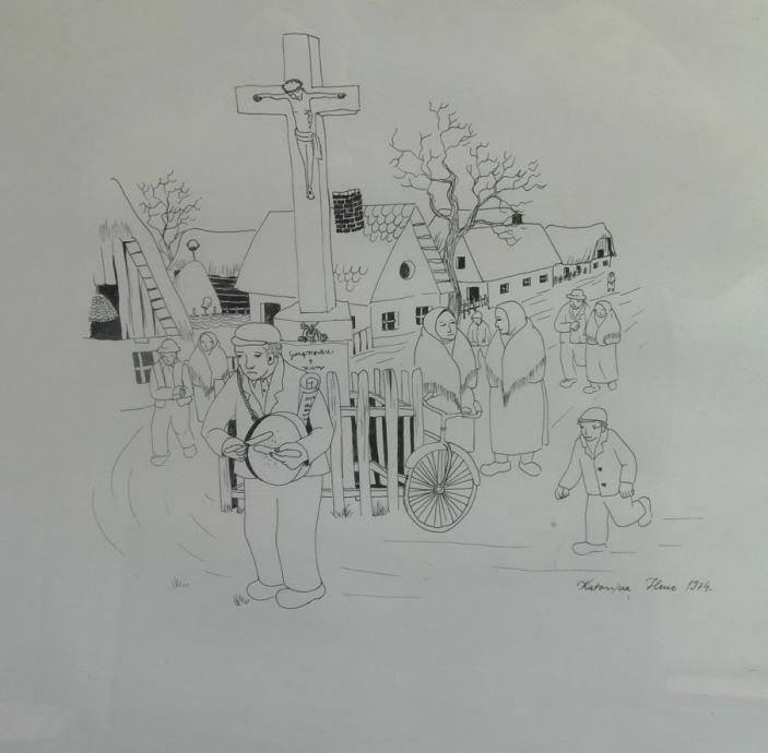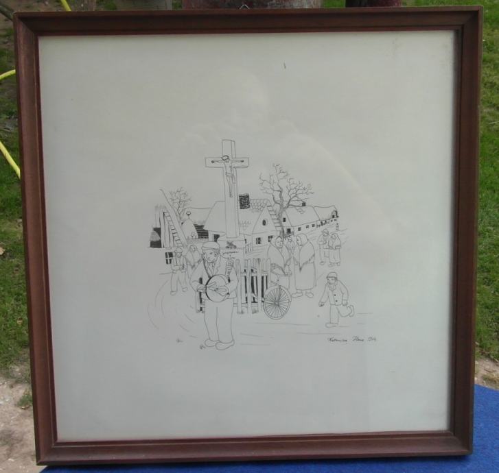 Katarina Henc - tuš na papiru - " Bubnjar na proglasu" iz 1974 godine