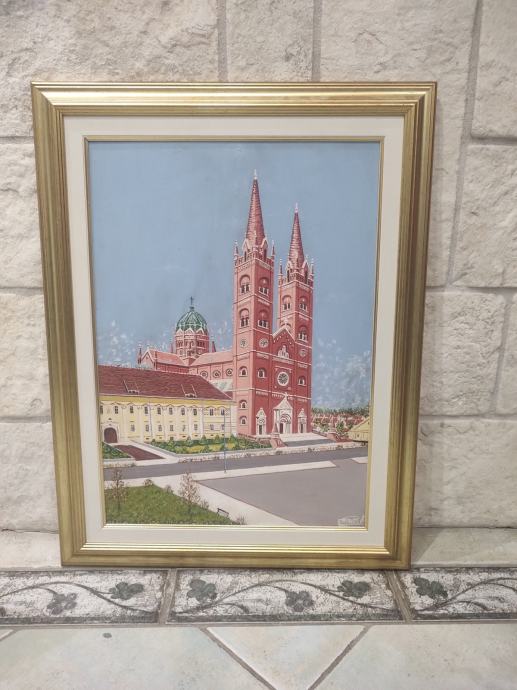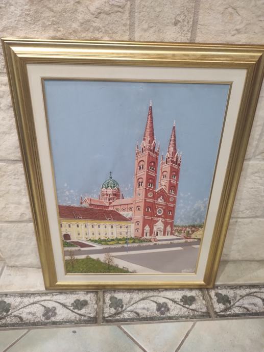 Katedrala u Đakovu, ulje na platnu, nepoznat autor, uramljeno