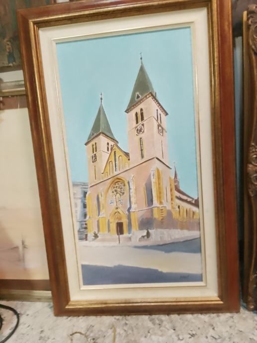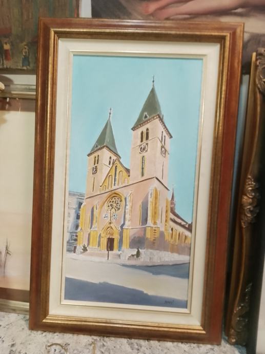 KATEDRALA u Sarajevu, Prilika,ulje na platnu,ZLATKO DEVIĆ , ak.slikar