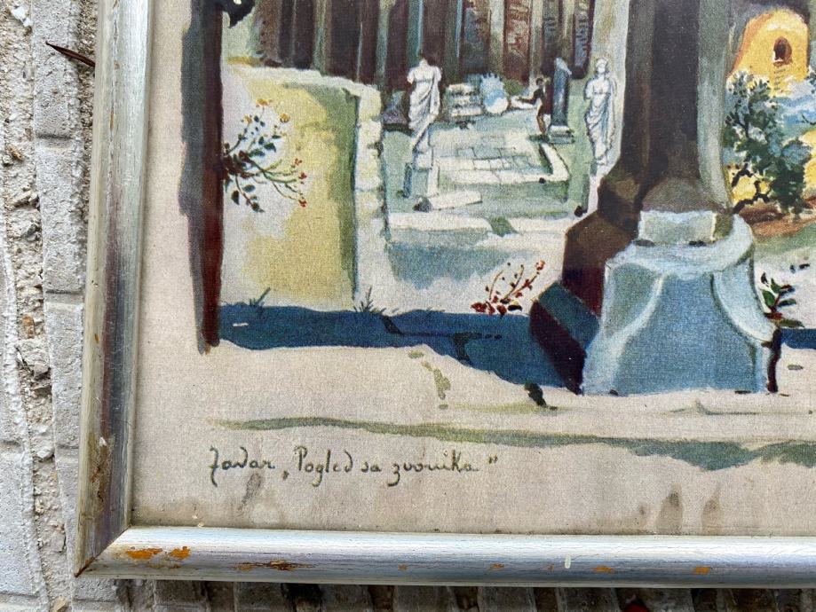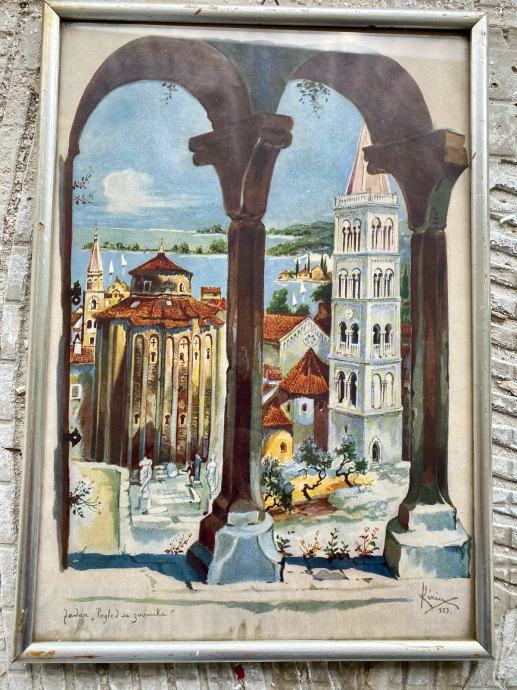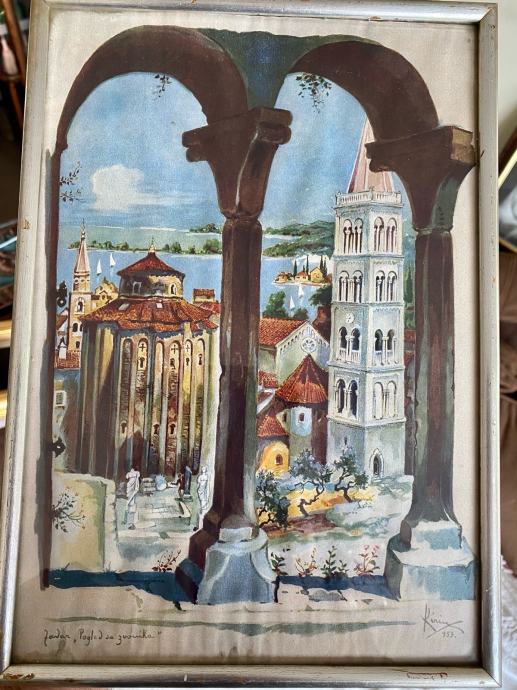 Prodajem grafiku Vladimira Kirina “Zadar pogled sa zvonika” iz 1953. godine. Grafika je potpisana od strane autora, šta se vidi na fotografijama. Još uvijek je u okviru iz 1953. godine, prekrasnih je živih boja. Dimenzije: 31x21 cm.
