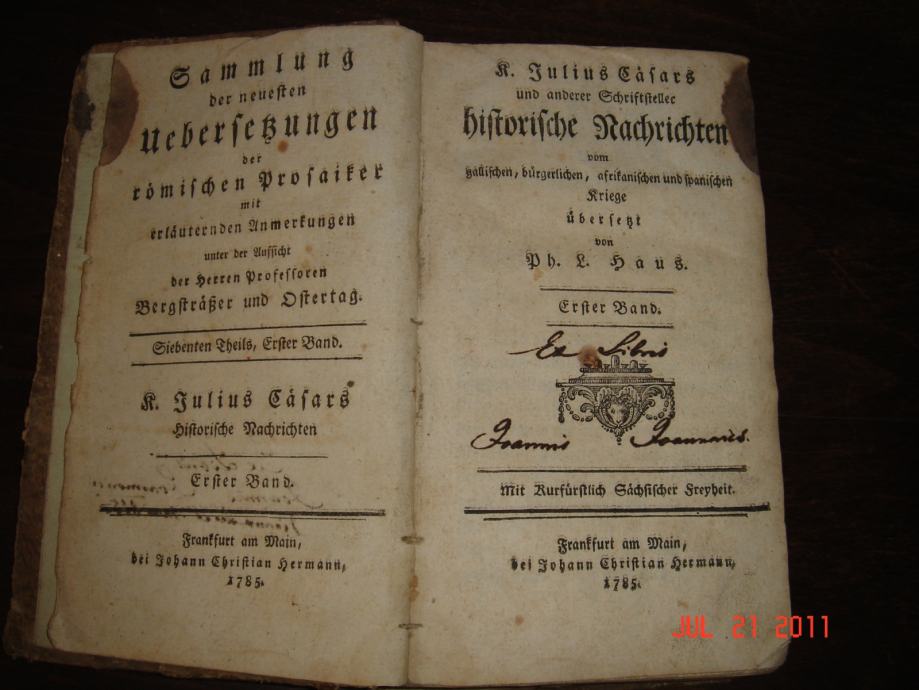 knjiga Julius CAFARS - EX LIBRIS Historische Nachrihten iz 1785