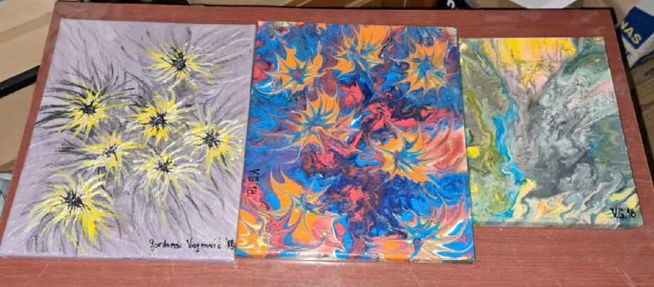 Prodajem komplet od 5 ručno rađenih slika, različitih veličina, cijena za svih 5 200 kn!