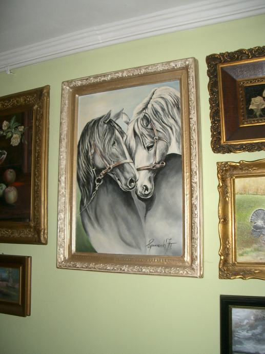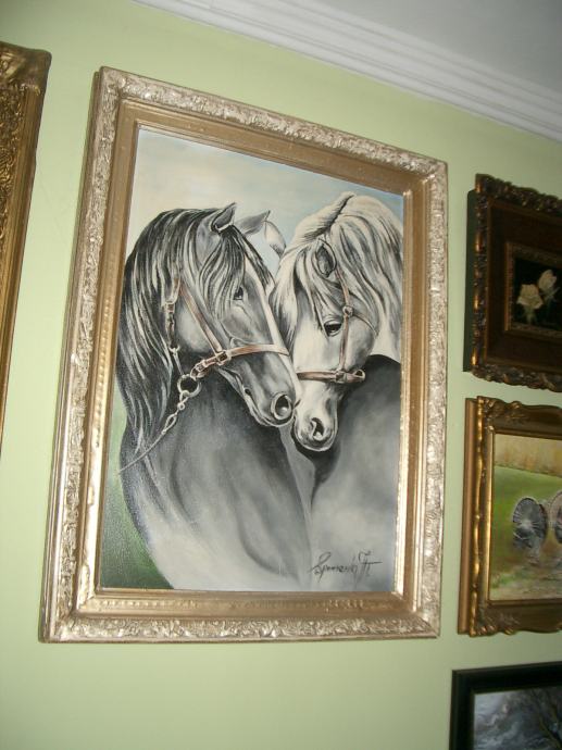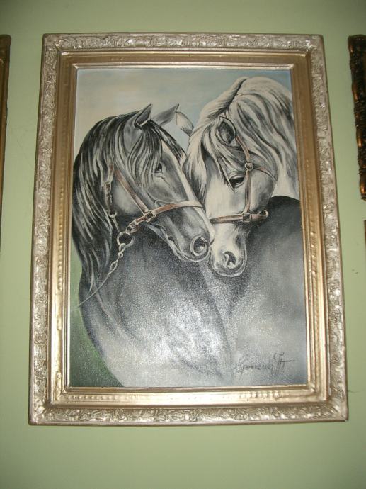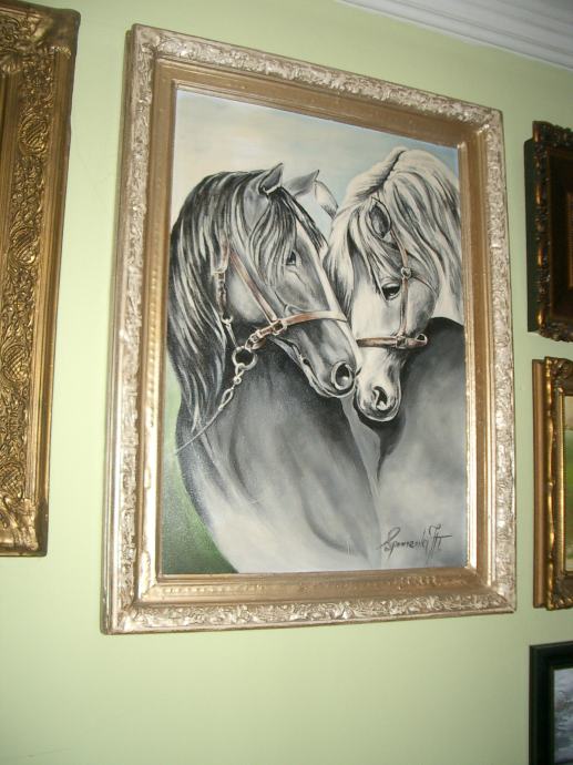 VELIKO ULJE na PLATNU KONJI autor slikarica Spomenka Horvat, vel: starinskog okvira rame; 61 X 80 cm. POGLEDAJTE i DRUGE MOJE OGLASE.