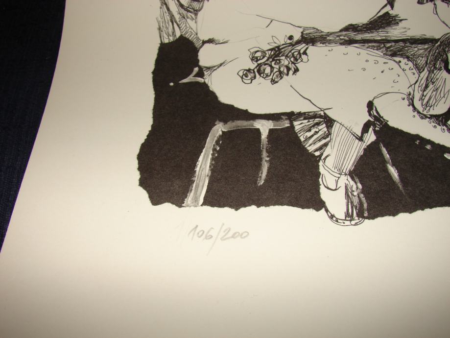 Potpisana i numerirana grafika poznate hrvatske slikarice i grafičarke Kristine Jeić. Dimenzije lista grafike su 50x35cm. Grafika je iz mape grafika "Kratka priča 2".