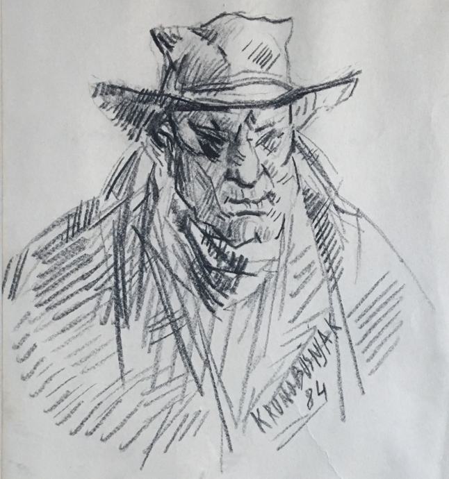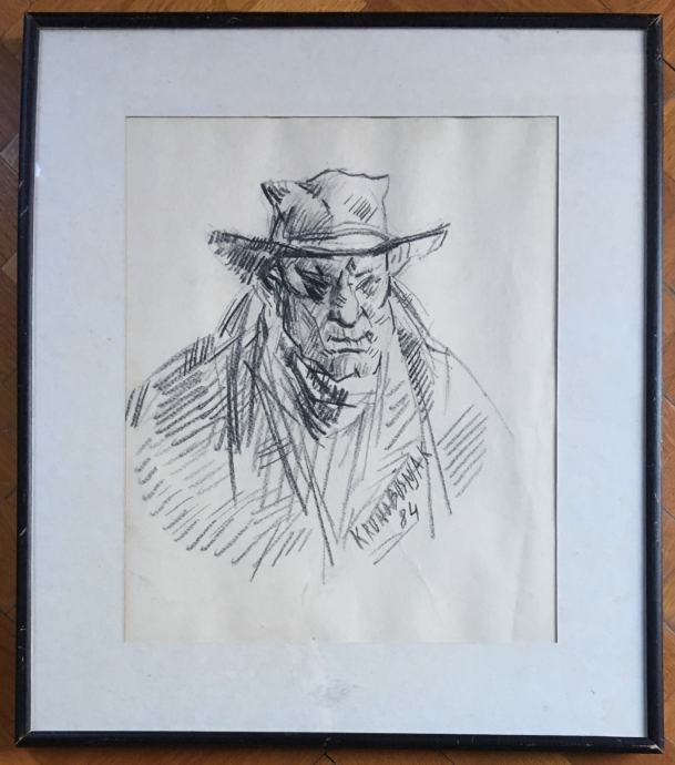 Originalni crtež pjesnika Tina Ujevića, poznatog akademskog kipara i slikara Krune Bošnjaka. Galerijski uokvireno i ostakljeno. Dimenzije sa okvirom su 47x42cm (dimenzije unutar paspartua su 34x28cm).