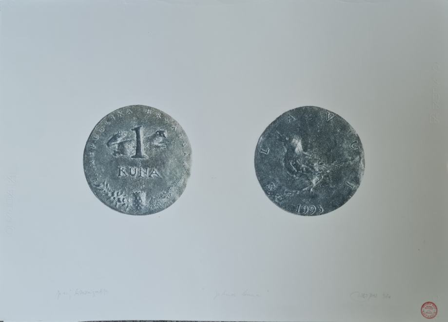 Kuzma Kovačić / Marijan Boras "Slavuj 1 kuna" litografija 50x70cm;