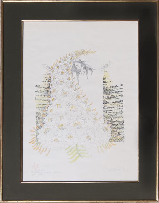 Uokvireno - bakreni okvir, paspartu tamni, staklo,