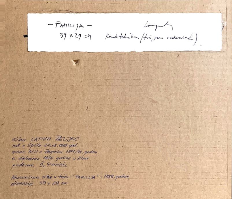 LAPUH ŽELJKO - AKADEM. SLIKAR - FAMILIJA - TUŠ-AKVAREL IZ 1989. GODINE
