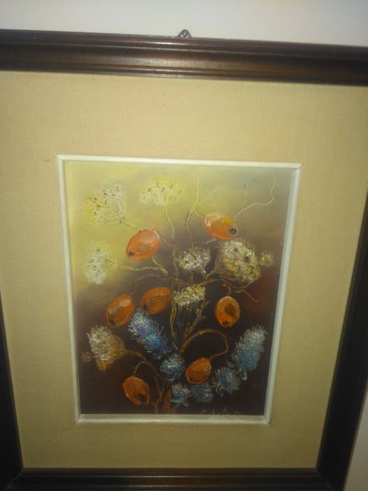 Kaširano na lesonit, 22 x 17 cm a s galerijskim okvirom 37 x 31 cm. Izlagano u Italiji