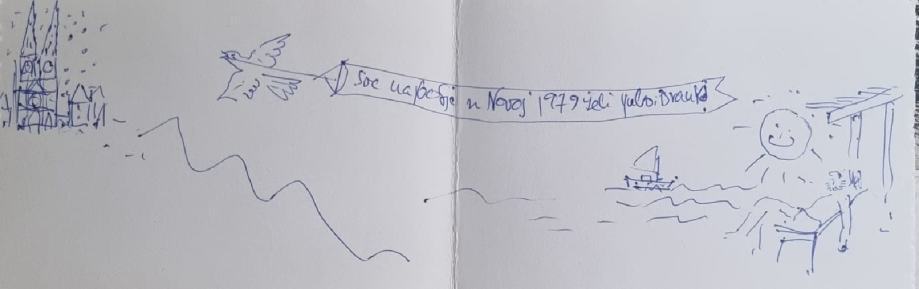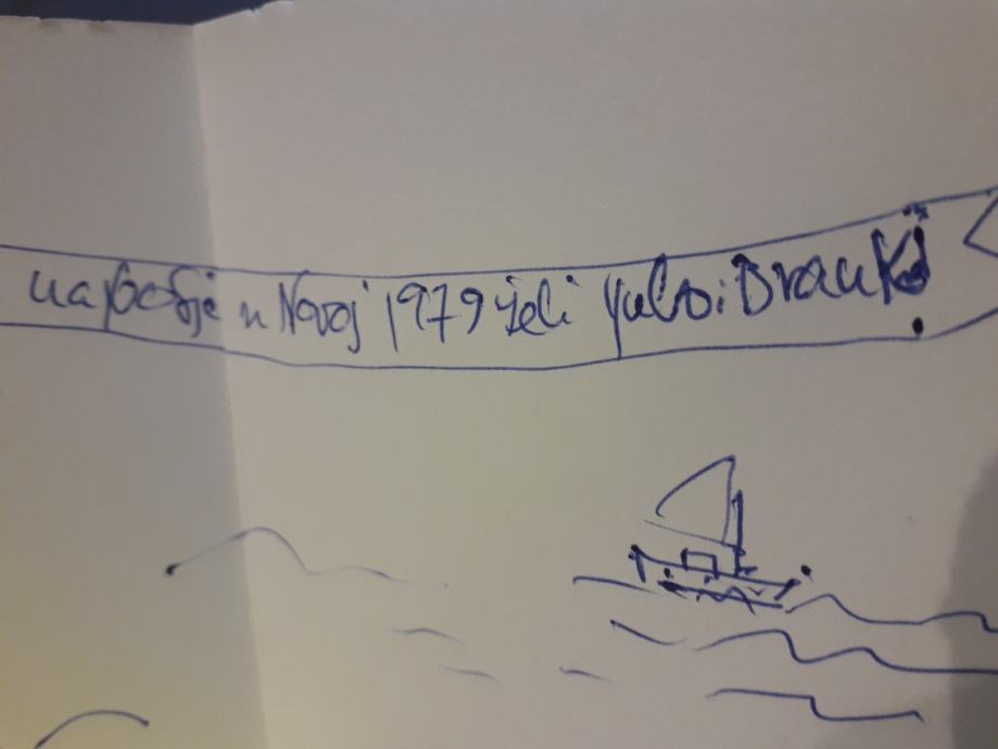 9,5x28,5, 1978g., Novogodišnja čestitka koju su g. Ljubo Ivančić i njegova žena Branka uputili slikaru Živku Haramiji za Novu 1979g. - crtež kemijskom olovkom na kartonu, samo osobno preuzimanje