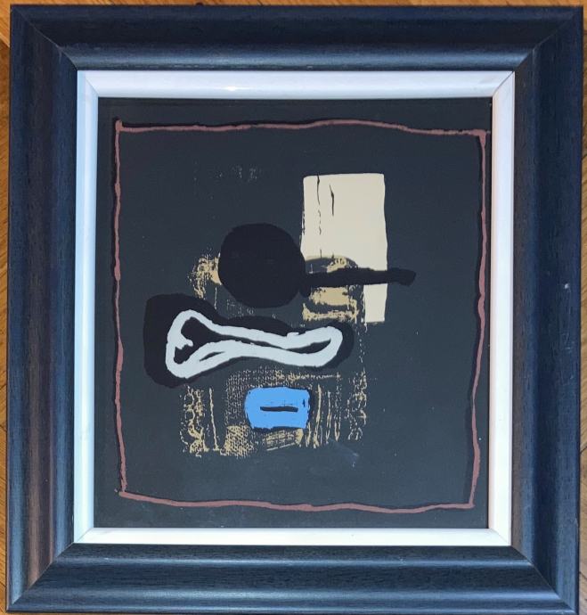 Nepotpisana originalna serigrafija čuvenog hrvatskog slikara Ljube Ivančića, koja je bila dio kataloga izložbe održane u Galeriji suvremene umjetnosti u Zagrebu, 1963.g. Uramljeno i ostakljeno. DImenzije s okvirom su 30x28cm
