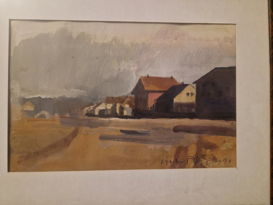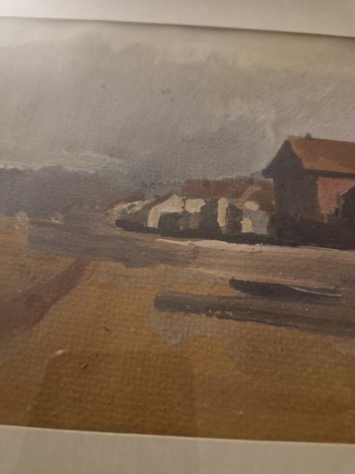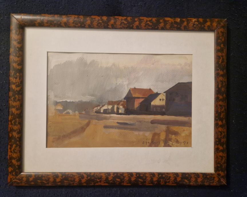 Papir oko 22 x 15 cm , okvir oko 33 x 26 cm...tempera ili ulje ili kombinacija, ne znam točno. Poruke na whatsapp