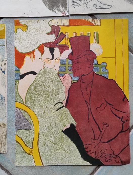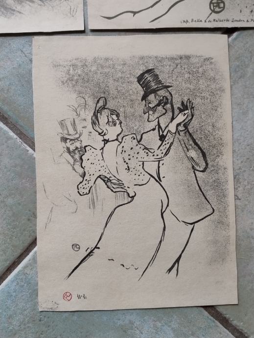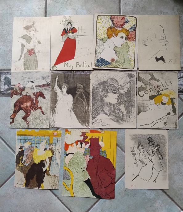 Lot od 11 vrhunskih otisaka na kartinu umjetničkih radova Henri de Tolouse - Lautree, potpisanih i numeriranih . Na poleđini svakog crteža, njegov opis. Redom: lijevo gore do desno dolje.