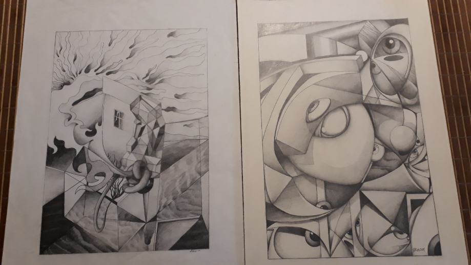 Lot od dvije slike potpisane istog autora olovka ili ugljen.saljem.0958241802