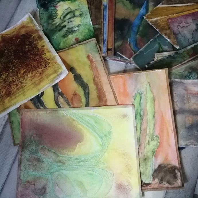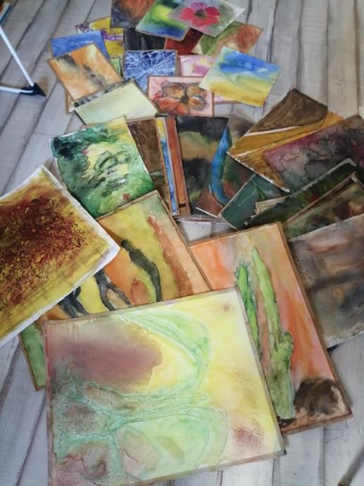 Akvareli, akrili, tempera.. Slike nepoznatog majstora, 65 komada, četiri različite dimenzije, 65x52 cm, 60x41 cm, 51x33 cm, te 33x30 cm, svih 65 za 50 e,slike su majstorski rad,