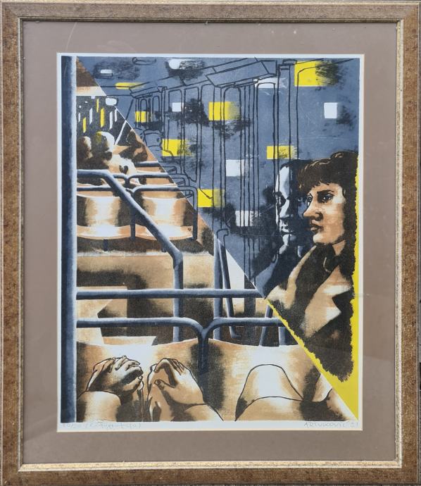 Lovro Artuković "U tramvaju" litografija 20/20, 70x50cm; iz 1991 god