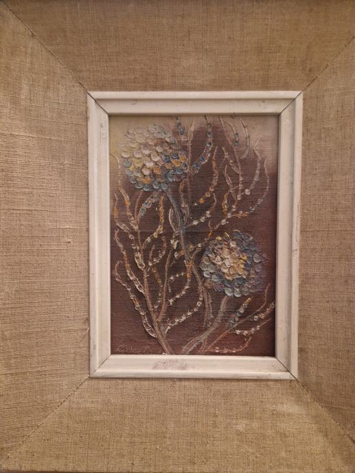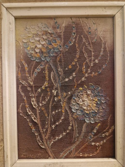 Platno kaširano na lesonit , oko 18 x 13 cm a s originalnim okvirima oko 32 x 28 cm...odlične za dekoraciju, poklon....cijena se odnosi na obje slike