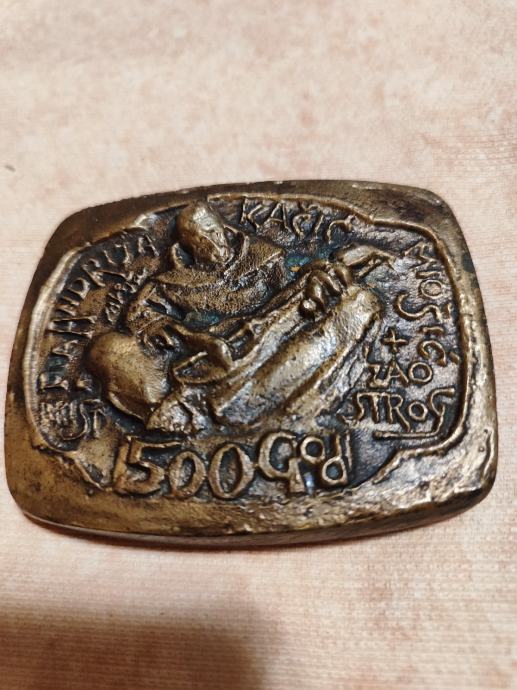 Medalja 500 godina samostana u Zaostrogu jedna od četiri originala autora Mladena Veže iz 1969 godine dimenzije 5x8 cm težine 400gr.