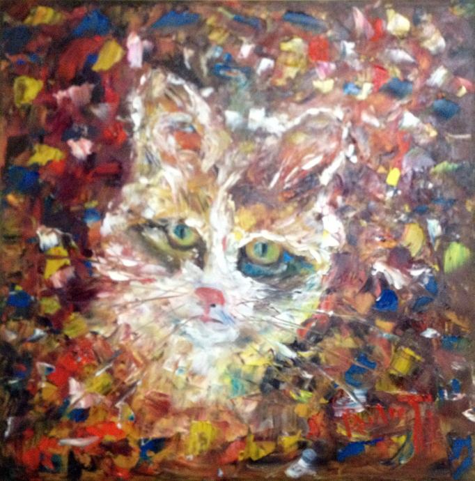 Slika mace . Ulje na platnu. Veličina 30 x 30 cm.