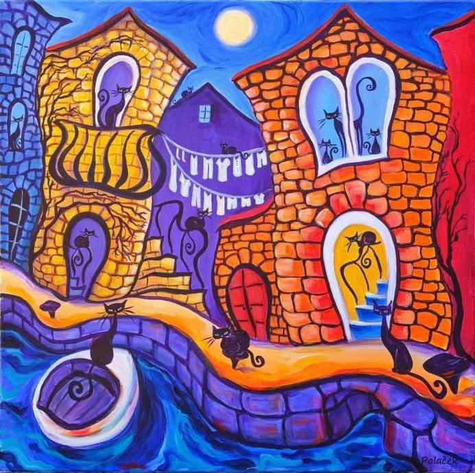 ''Mačkograd'' je umjetnički print na platnu, autorica je akademska slikarica Koraljka Polaček.