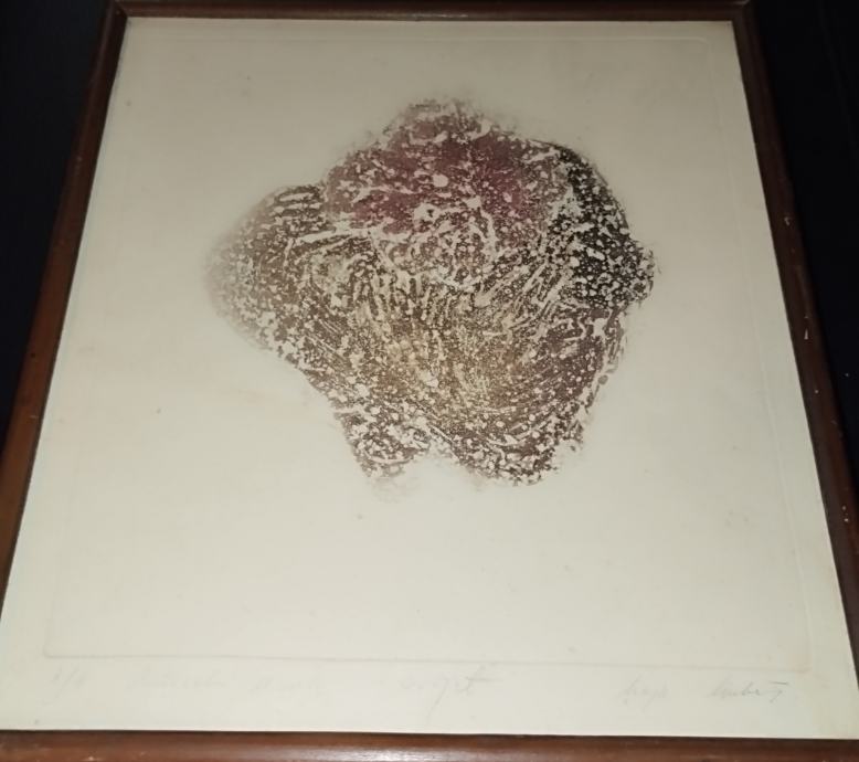 Rijedak bakrotisak hrvatske akademske slikarice. Numeracija 3/4. Dimenzije 32x28cm.