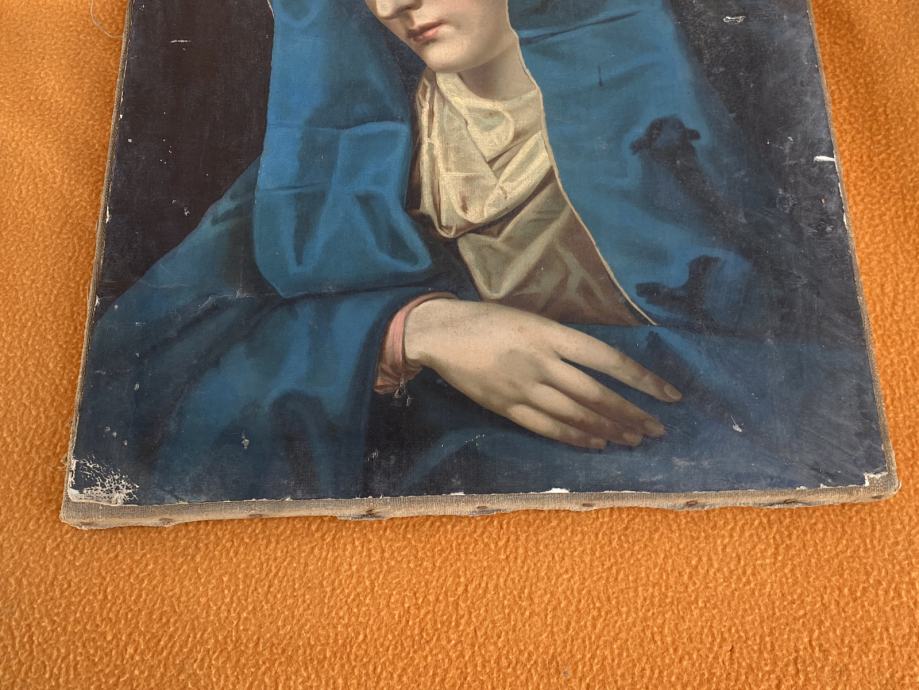 -slika ima oštećenja i zgužvana je, papir zaljepljen na platno