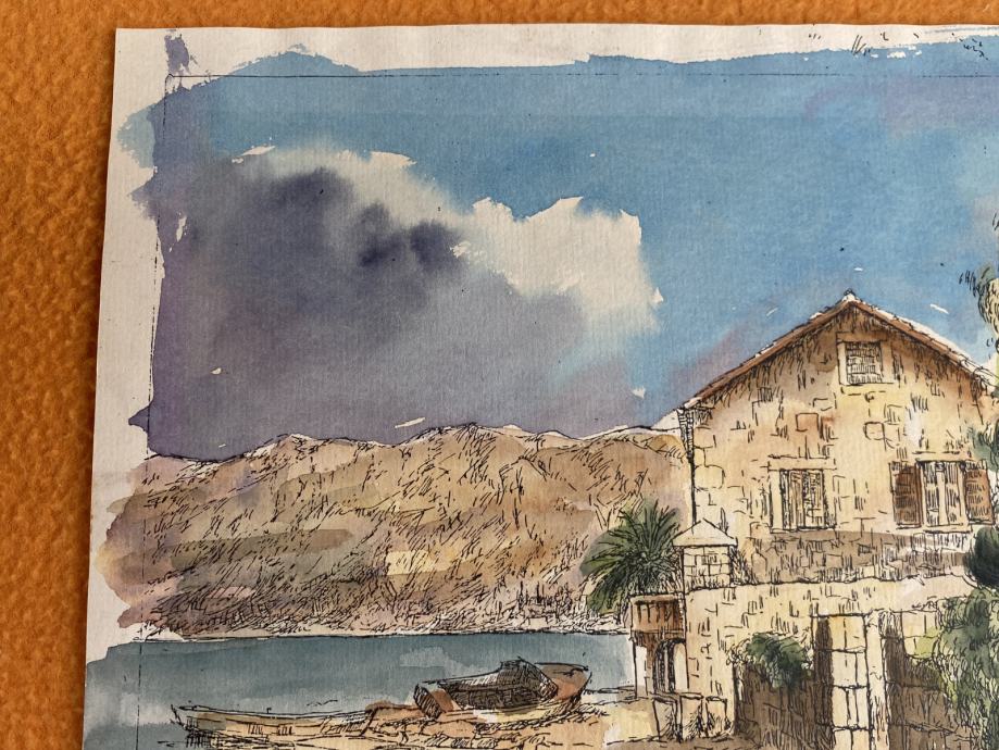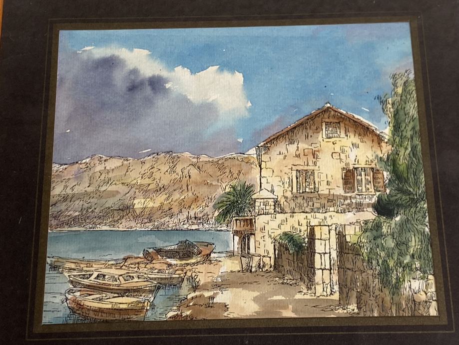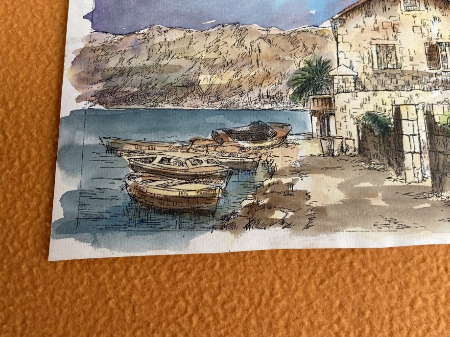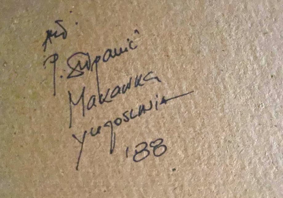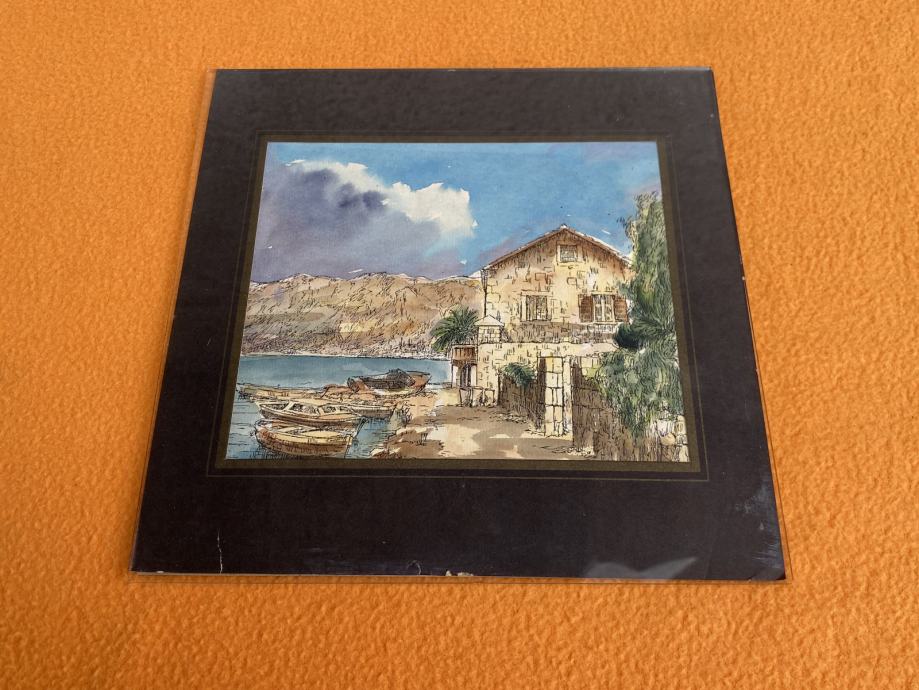 -17,5 x 15 cm samo slika, nedostaje okvir, potpis na zadnjem kartonu