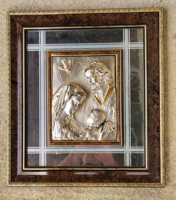 Marija,Josip i Isus - slika u reljefu i ogledalo