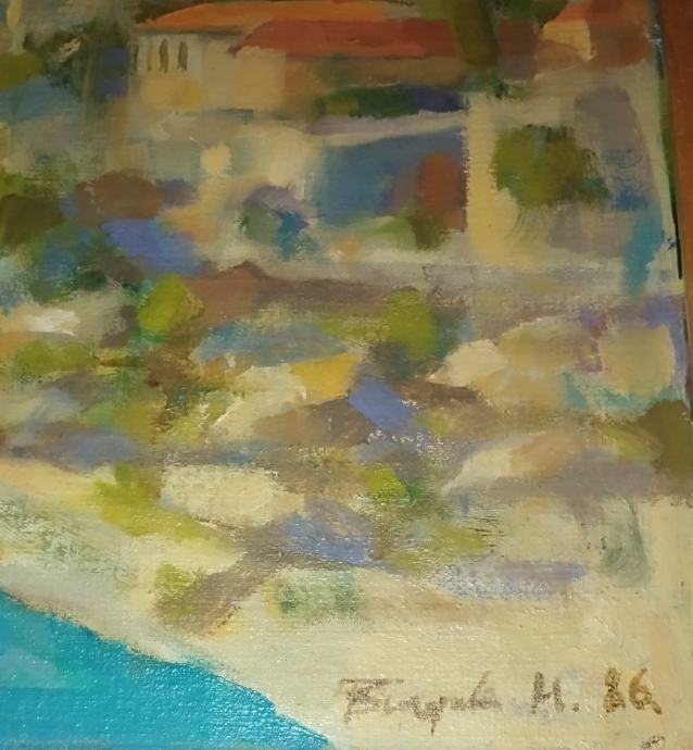 Ulje na platnu iz 1986.g. Dimenzije 63/48cm.